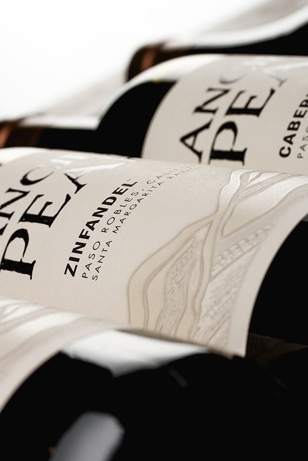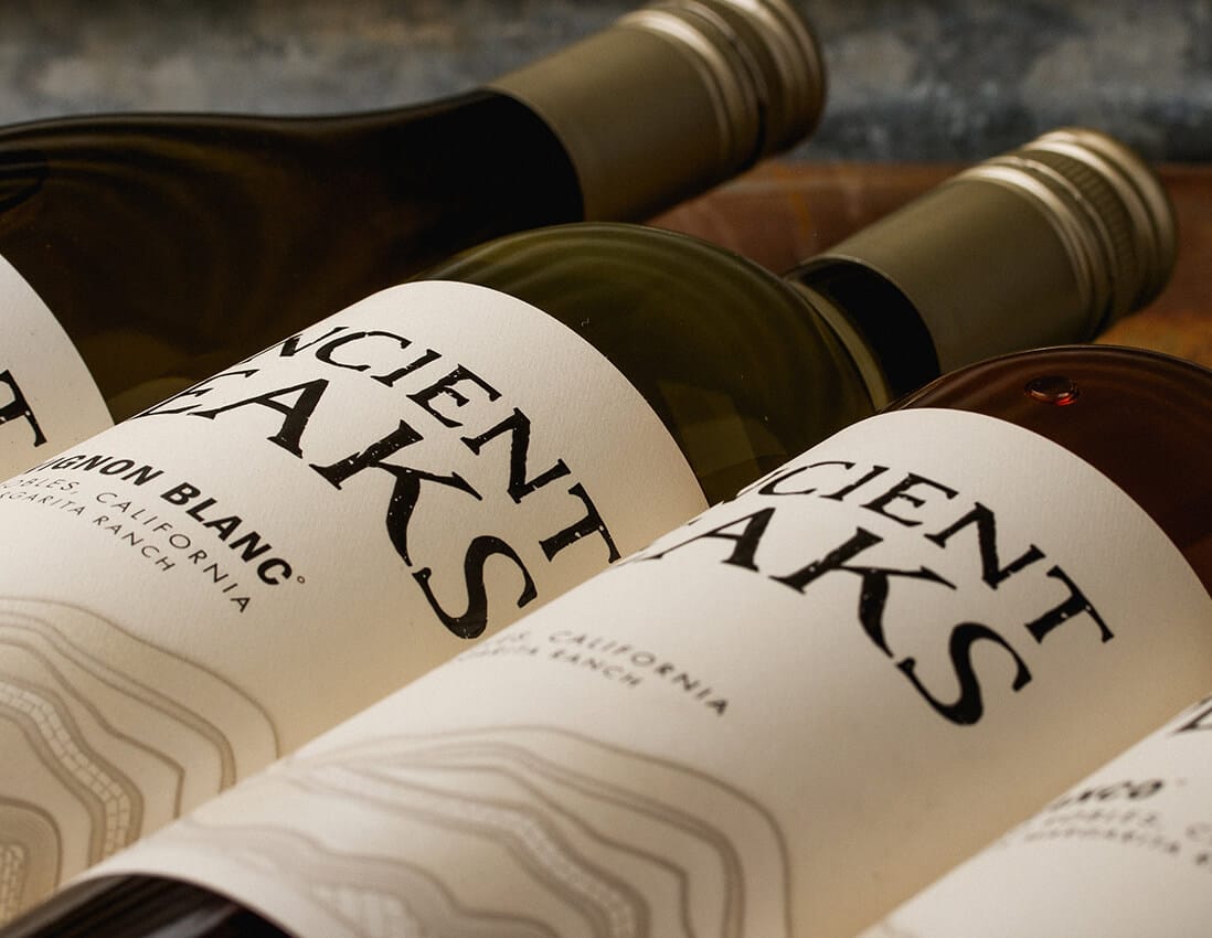 Inspired by the region’s rugged terrain and the ranch’s layered past, the labels balance authenticity with modern refinement. Through thoughtful typography, material choices, and a restrained visual language, the wine label design reinforces Ancient Peaks’ commitment to quality, provenance, and wines that are expressive of their environment.