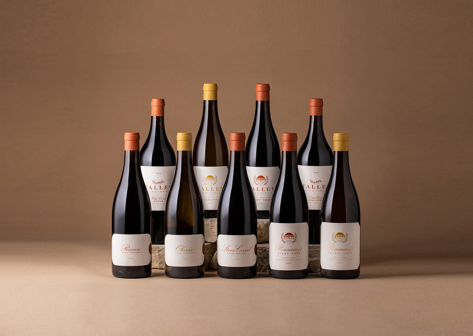 The wine label design emphasizes texture, restraint, and clarity—allowing each varietal to stand on its own while maintaining a unified family look. Subtle details nod to the land’s history without overpowering the wine itself.