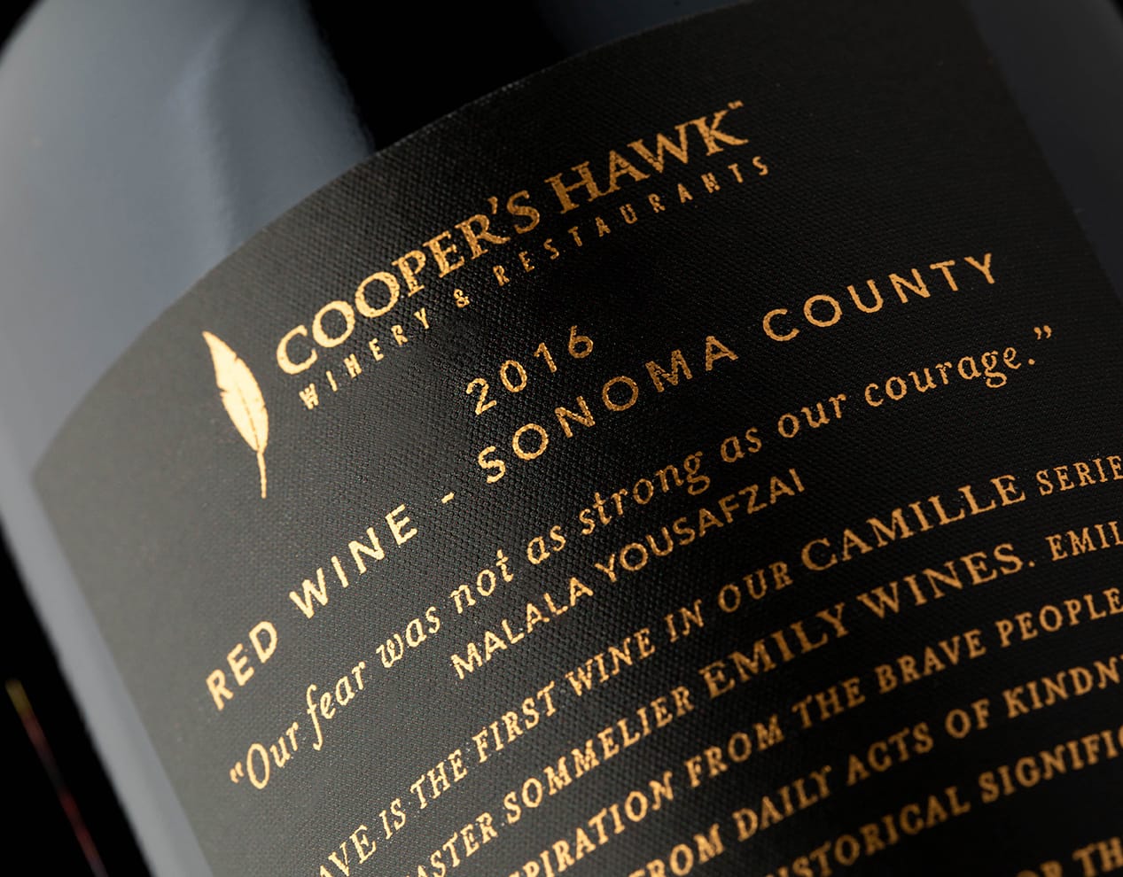 Inspired by a winemaker with a myriad of aspects to her personality, she draws from each on a daily basis to accomplish everything she's set her mind to. Camille wines are meant to inspire, crafted in honor of the strength, bravery, and courage of women. Featuring hand-drawn illustrations mixing photography with oil painting styles, strength with softness, each featured woman is mysterious yet relatable, a figure in which any woman could see herself reflected. Carefully selected paper, paired with gold foil and embossed accents enhances the distinctly premium feel of this lineup. Camille wines are a testament to the strength and power of women – perhaps you are one, perhaps you know one, perhaps you're raising one.