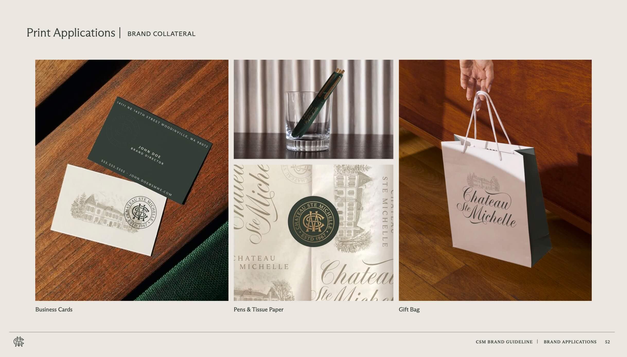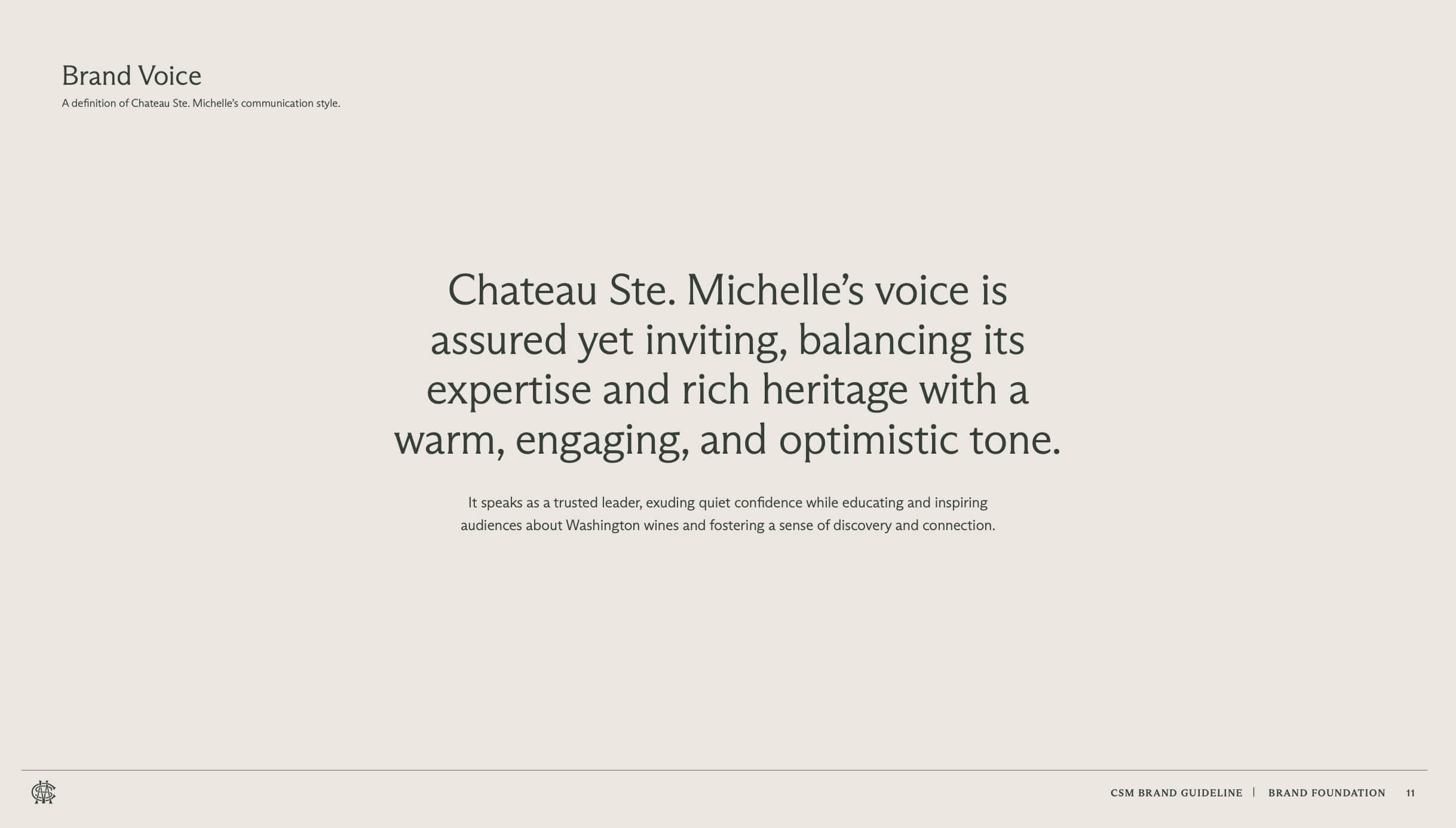 Makers & Allies led the development of a refreshed brand identity that realigned how Chateau Ste. Michelle looks, sounds, and shows up in the world. The logomark system was refined for clarity and legibility, while honoring long-standing equities. Color, typography, texture, and iconography were built to reflect Washington’s landscape and the character of the Chateau itself. Alongside the visual system, we helped define the brand’s foundational messaging—clarifying its story, point of view, and role as Washington’s founding winery. Together, the visual and verbal systems create a cohesive brand identity that feels established yet welcoming, uniquely scaleable, and rooted in a real place with a clear sense of purpose.