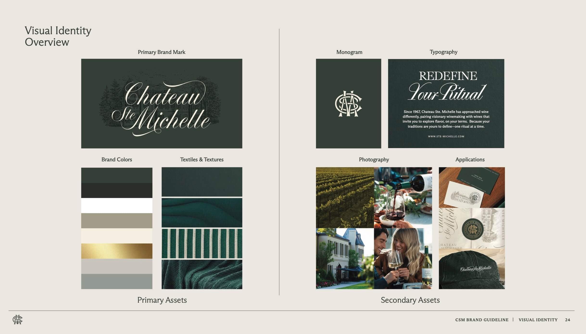 The Chateau Ste. Michelle rebrand was built around a simple truth: since 1967, Chateau Ste. Michelle has shaped Washington wine. As the Pacific Northwest’s most iconic and largest winery, its influence extends far beyond a single label—helping define an entire region and category. When Makers & Allies partnered with Chateau Ste. Michelle to lead a comprehensive rebrand, we knew our work wasn't about rewriting history. Instead, we sought to honor their legacy of visionary leadership, restore an iconic sense of place, and strengthen the brand's relevance for a new generation of wine drinkers. The result is a full brand system, spanning a brand identity, refreshed packaging, and a launch campaign, that celebrates heritage while expressing the vitality of a very real winery—rooted in Washington and confident about the legacy it will continue to build.