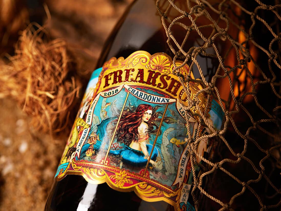 Whether onsite at Michael David Winery's bustling winery and tasting room grounds, or in the studio making visual magic happen, our goal with every Freakshow shoot has been to bring our freaky characters to life. Sometimes moreso than others – featuring our very own real-life strongman and mermaid, who even took a dip in the Michael David pond!