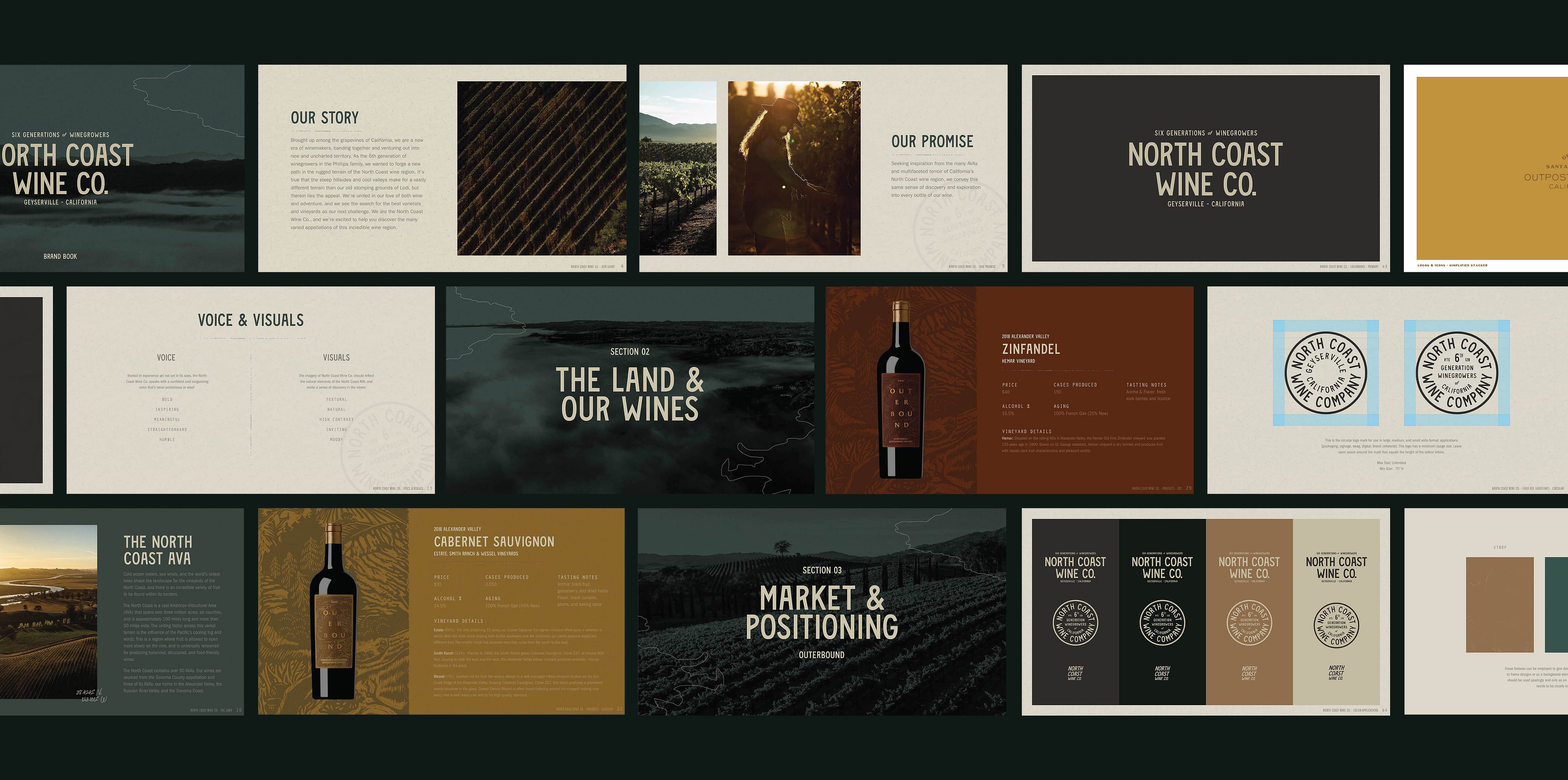 Our challenge was to uniquely position North Coast Wine Co. not only in relation to Sonoma Coast wines but California wines as a whole. After completing a thorough market analysis, category territory mapping, and a tour of the coastal mountains and redwood trees we determined to head in an adventurous direction for the brand. With NCWC seeking inspiration from the many AVAs and multifaceted terroir of California’s North Coast wine region, every bottle of their wine conveys a sense of discovery and exploration—and we wanted the brand identity to do the same. Through natural textures, natural color palette, and contemporary typography, we designed a new forward-thinking logomark system and visual identity that feels as traditional as the generations of winegrowers from which it was born.