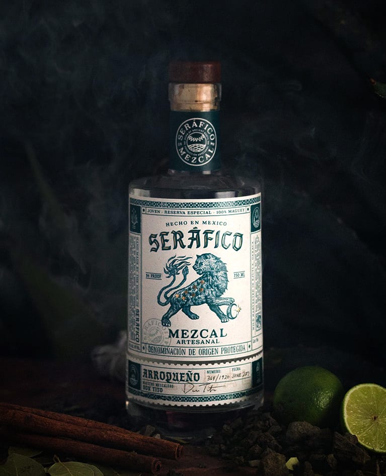 Seráfico is a premium artisanal mezcal brand with a focus on highlighting the unique characteristics created from some of the rarest agaves that can be found in Oaxaca, Mexico. Ranging from estate grown to wild harvested agaves, each mezcal is meticulously handcrafted resulting in five unique expressions. Authentically inspired by the ancient history and mysterious traditions of mezcal folklore, each label is guarded by a two-tailed and seven-starred Spirit of Seráfico surrounded by custom illustrated alchemy symbols representing each step of the mezcal-making process.